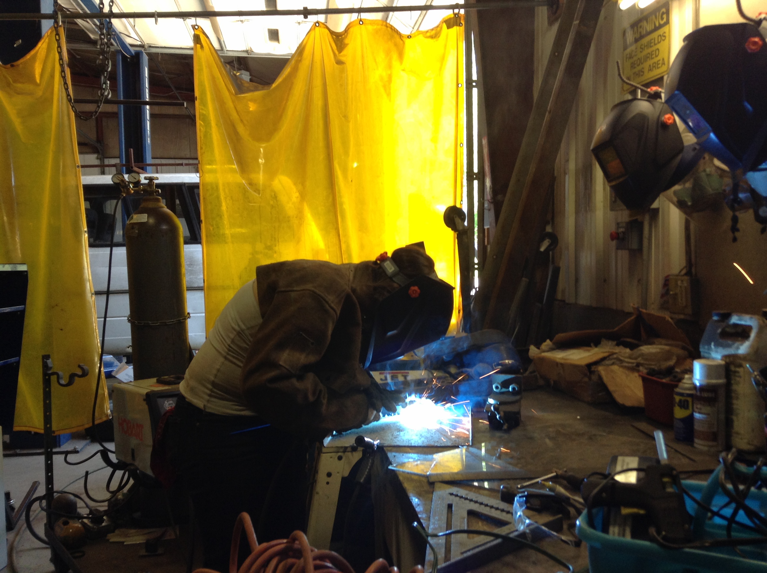Earlier that day while we were on the Blue Ridge Parkway overlooking the mountains Zac, the guy who took me around, explained that there was a special magic about Asheville. I listened to him share some serendipitous stories he had experienced here while gazing into what are supposed to be some of the most ancient mountains in the world. A couple weeks ago I consciously had the thought that I want to meet people passionate about things and document it, then I meet this beekeeper girl. The way that Zac met me; someone doing a similar trip to what he will be making soon, how I keep coming across motorcycle stuff, he lived in Berlin, I used to live in Berlin. Only a few days ago I thought about this idea of where to put a new rack on the bike but didn’t want to pay for someone to weld and cut metal and now I’m standing outside of the mechanic shop at the college having it done for free.