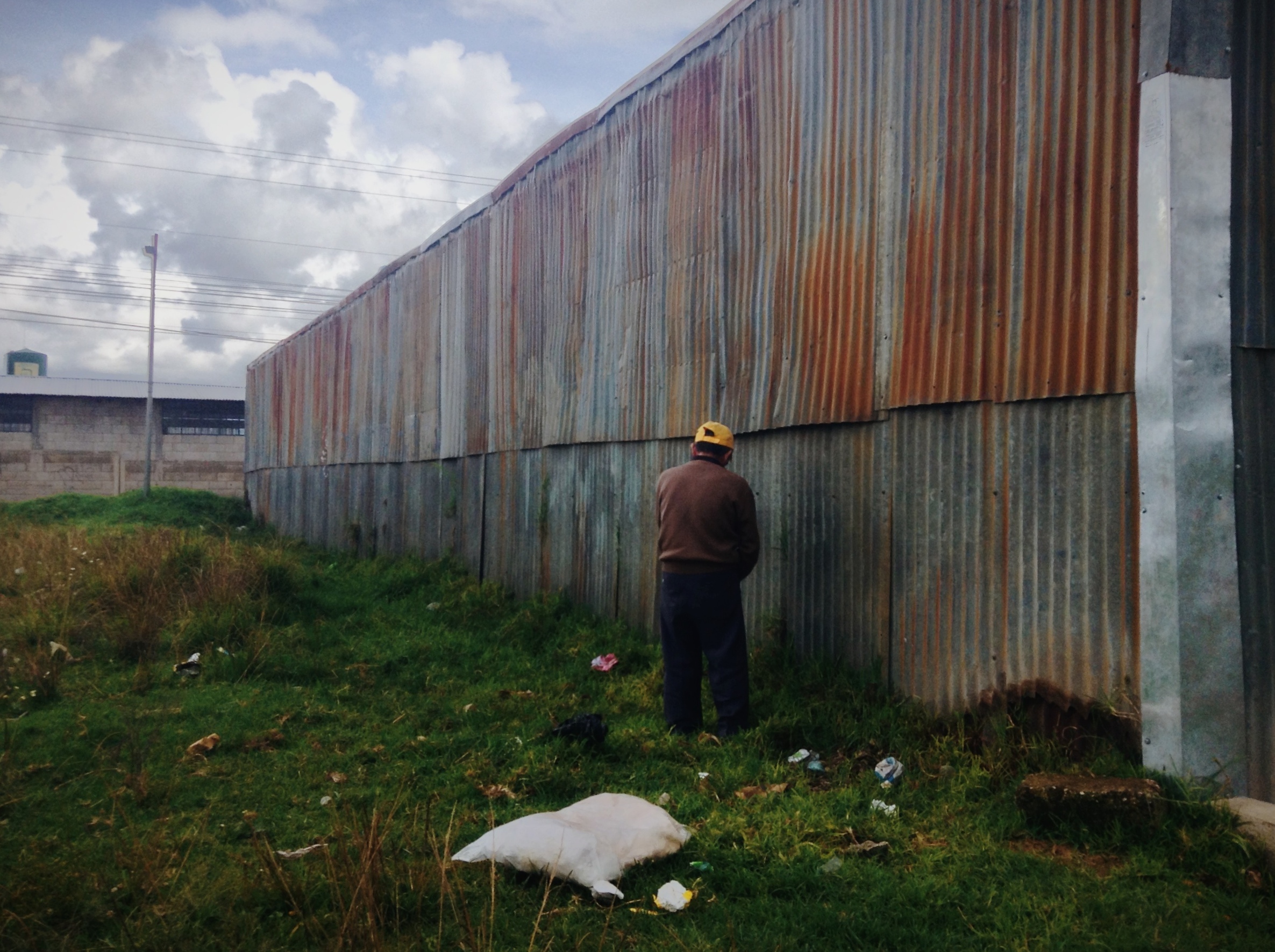 A Queztaltenango local pees on a wall in what he believes is peace, not realizing a tourist is taking his photo with the intention to upload it to the world wide web where potentially anybody with an internet connection can witness his personal doings, Guatemala