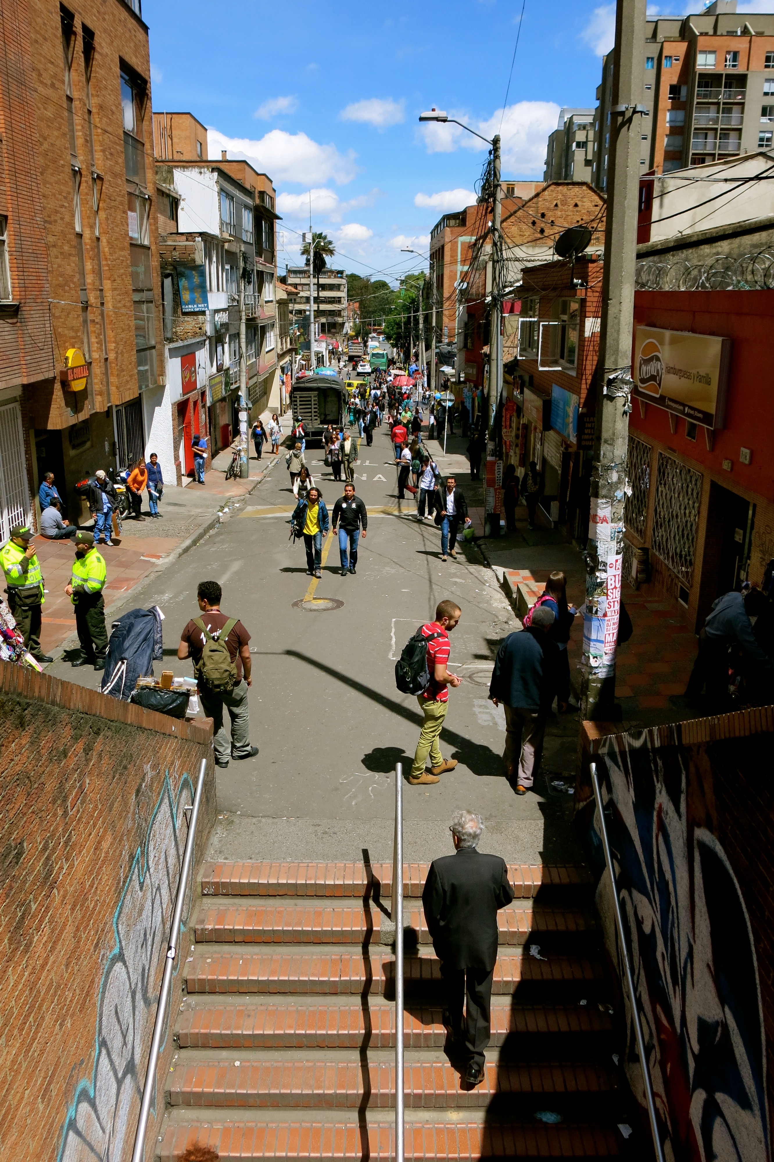 Two policemen leisurely chat as the busy world passes them by, Bogotá Published May 25, 2015 at 2664 × 4000 in Colombia ← Previous Next → Two policemen leisurely chat as the busy world passes them by, Bogotá