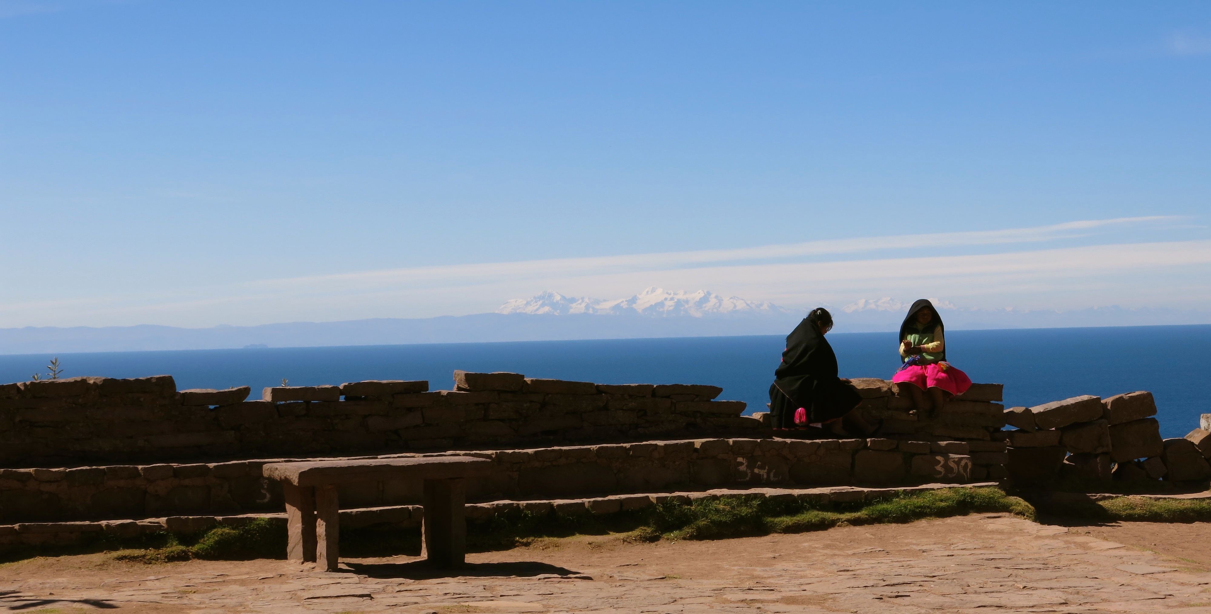 Two indigenous women chat in the early morning sun while the tall peaks of Bolivia loom in the distance. Lake Titicaca Published September 11, 2015 at 4000 × 2027 in Perú ← Previous Next → Two indigenous women chat in the early morning sun while the tall peaks of Bolivia loom in the distance. Lake Titicaca